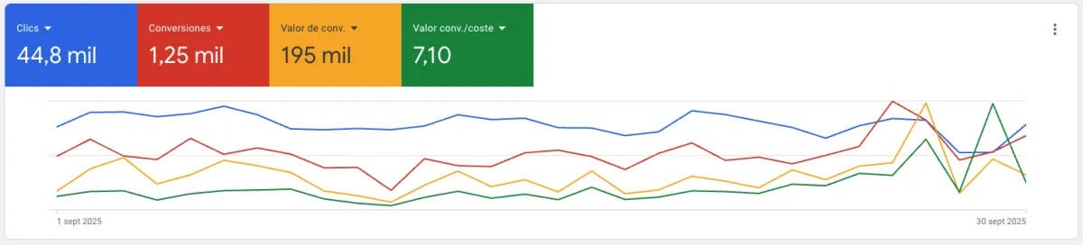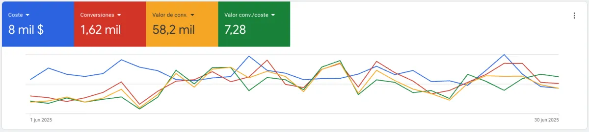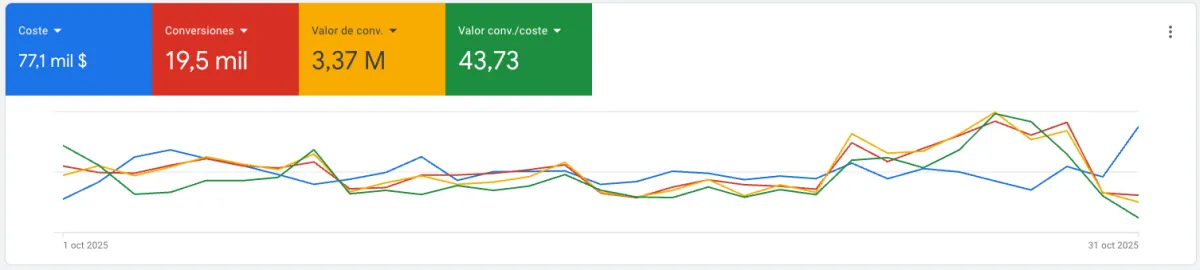 E-commerce de Moda & Accesorios : +204% de crecimiento del ROAS, alcanzando 1.250 ventas y generando 195.000 USD en tan solo un mes gracias a campañas optimizadas en Google Ads.